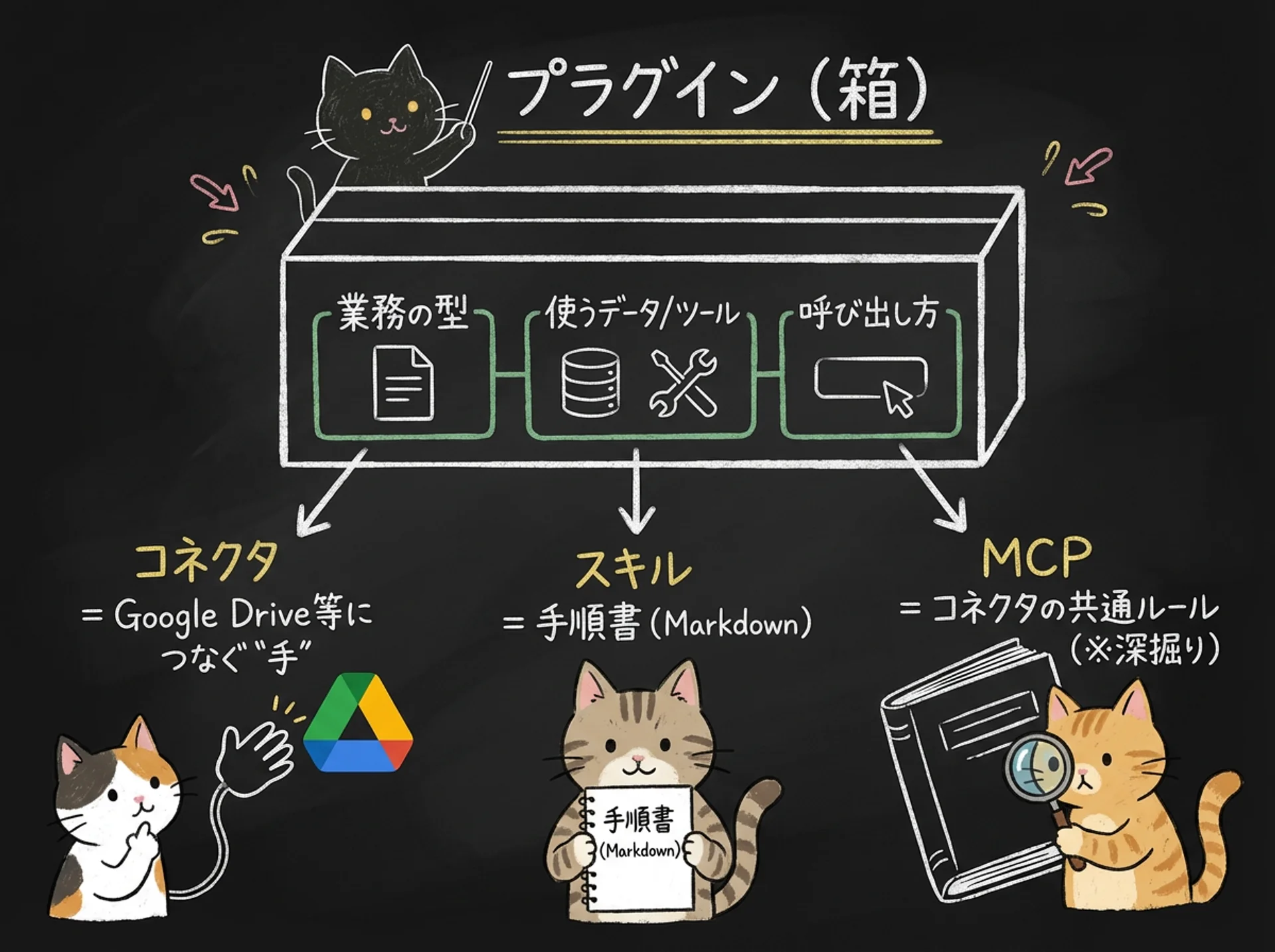 プラグイン(箱)=「業務の型」+「使うデータ/ツール」+「呼び出し方」